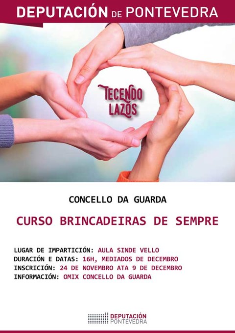 Amplíase ata o vindeiro xoves día 15 de decembro o prazo de inscrición para o curso "Brincadeiras de sempre", que se impartirá a finais de decembro na Guarda a través da acción da Deputación Tecendo lazos.