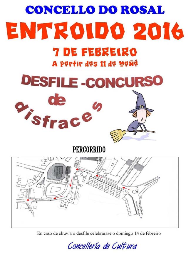 O Concello do Rosal convocou o tradicional concurso de carrozas, comparsas, grupos e disfraces individuais que se celebrará con motivo do Entroido 2016, o vindeiro domingo 7 de febreiro, ás 11:00 horas, na vila do Rosal.