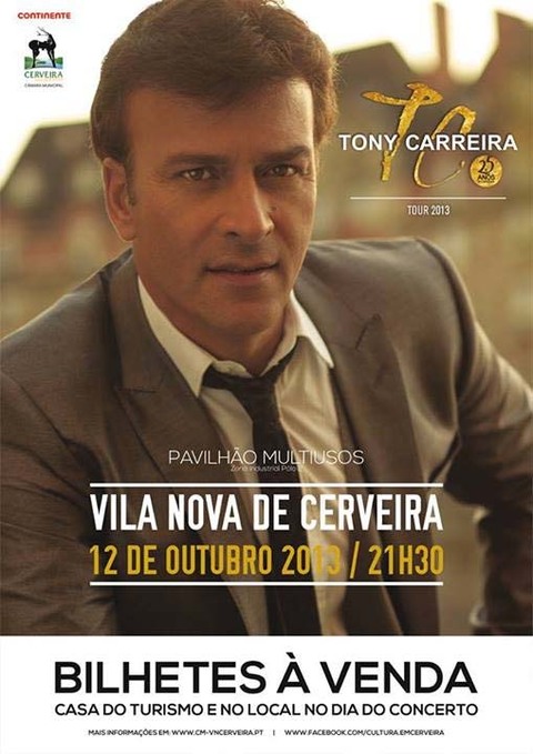 -BILHETEIRA ESGOTADA- CONCERTO DE TONY CARREIRA, DIA 12 DE OUTUBRO, NO MULTIUSOS, COM RECEITA A FAVOR DOS BOMBEIROS DE CERVEIRA
