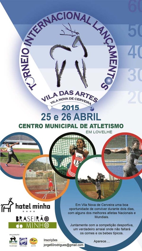 A ADRCL - Associação Desportiva Recreativa e Cultural de Lovelhe, com a colaboração da Câmara Municipal de Vila Nova de Cerveira e da Associação de Atletismo de Viana do Castelo, promove, no domingo, o VII Torneio de Lançamentos - ‘Taça Vila das Artes'. Competição traz ao Centro Municipal de Atletismo 15 equipas portuguesas, espanholas e francesas.