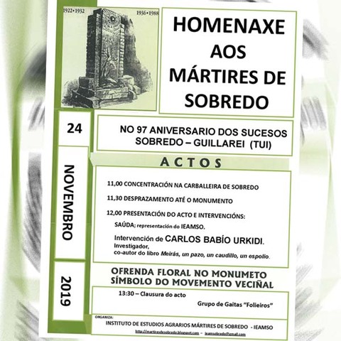 Conmemoración dos Sucesos de Sobredo no seu 97 aniversario este domingo 24 de novembro en Sobredo (Guillarei ? Tui)