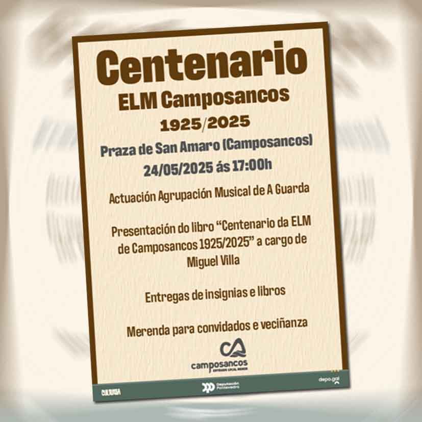 La celebración contará con una actuación de la Agrupación Musical Guardesa, una de las agrupaciones más representativas de la zona. Uno de los momentos más esperados será la presentación del libro “Centenario da ELM de Camposancos 1925-2025”, escrito por Joaquín Miguel Villa, que recorre la evolución de la entidad desde su fundación hasta la actualidad.