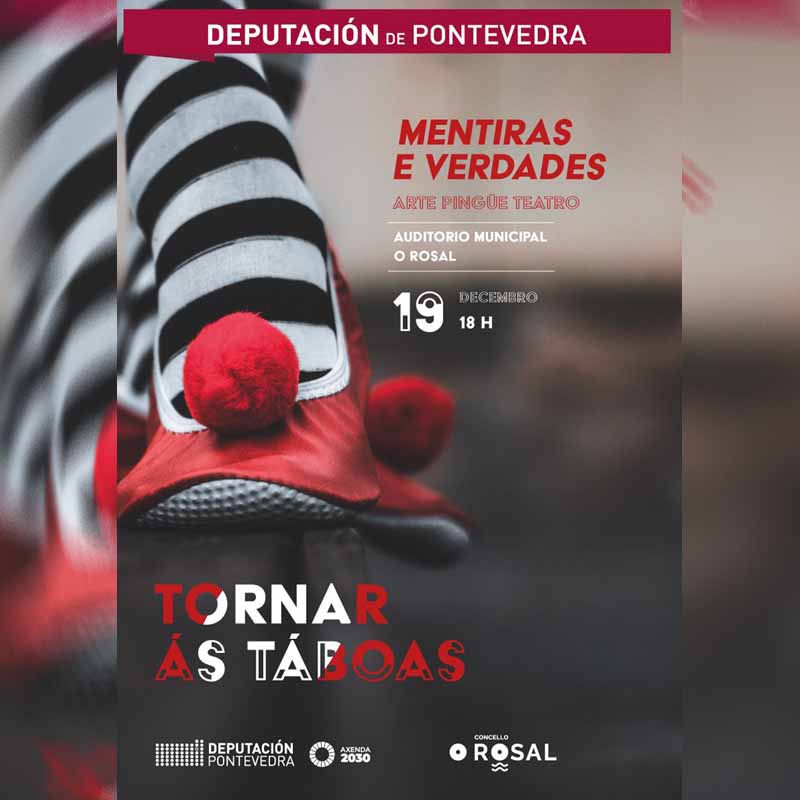 "Mentiras e verdades" chega ao O Rosal dentro do programa Tornas ás Táboas da Deputación de Pontevedra, que organiza 35 espectáculos de 35 compañías diferentes da provincia, que terán lugar nos 34 concellos participantes.