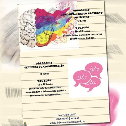 Ademais e coa colaboración da Escola superior Gallaecia levaranse a cabo dous obradoiros sobre «Cómo realizar un proxecto artístico?» e «Técnicas de comunicación».