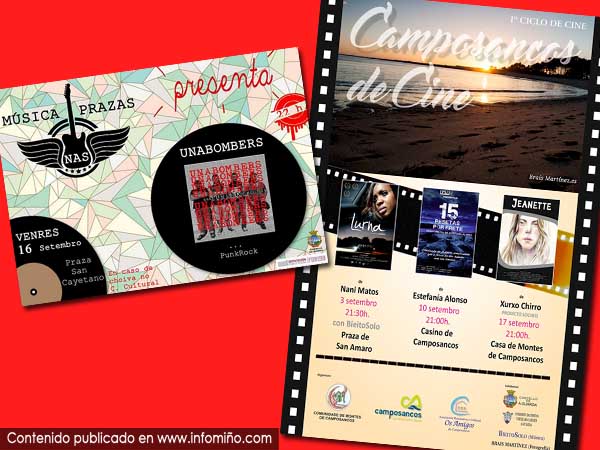 Terceira cita do festival -Música nas Prazas- e do ciclo de cinema -Camposancos de cine- nesta vindeira fin de semana guardesa