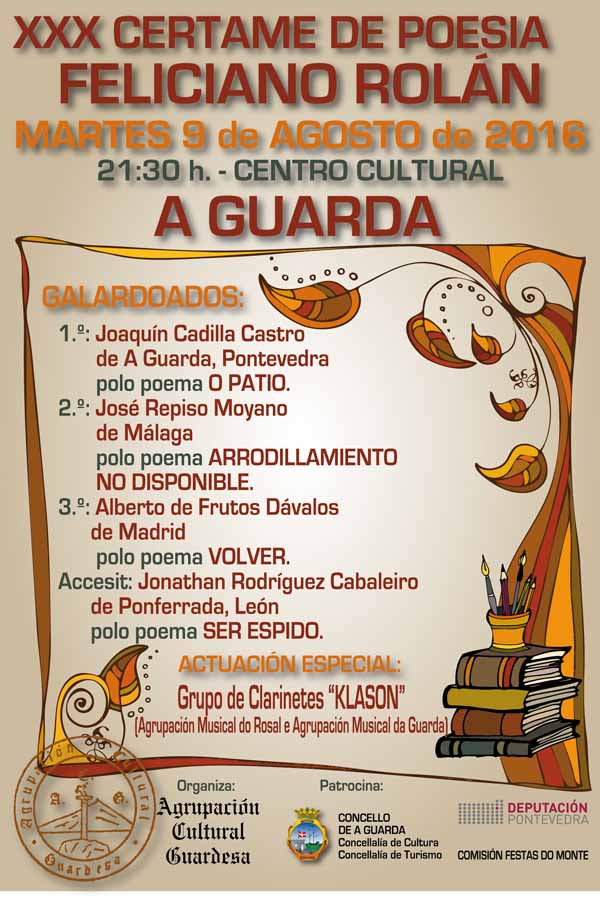 A Agrupación Cultural Guardesa xa ten o nome dos premiados do XXX Certame de Poesía Feliciano Rolán