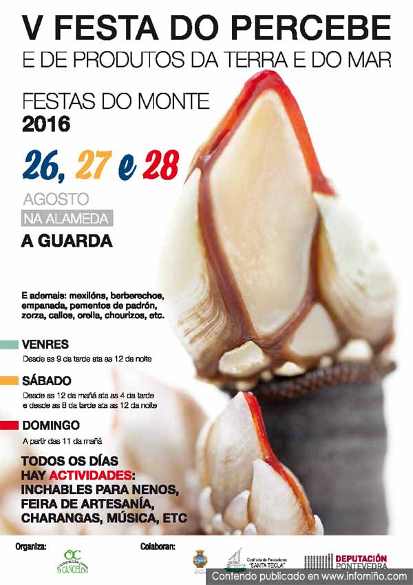 A V Festa do Percebe, organizada pola Asoc. O Cancelón coa colaboración do Concello de A Guarda, a Cofradía de Pescadores Sta. Tecla e a Deputación de Pontevedra, chega á A Guarda esta fin de semana cargada de actividades para todalas idades.