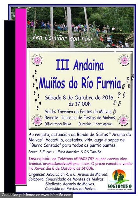 A Asociación Arume de Malvas organiza o 8 de outubro a III Andaina polos Muíños do Río Furnia