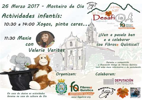 O vindeiro domingo día 26 de marzo de 2017 terá lugar en Oia a III edición do Trail Desafío Oia no que ademáis realizaránse actividades que organiza o Concello e a Asociación da Fibrose Quística Galega durante o desenvolvemento deste evento deportivo.