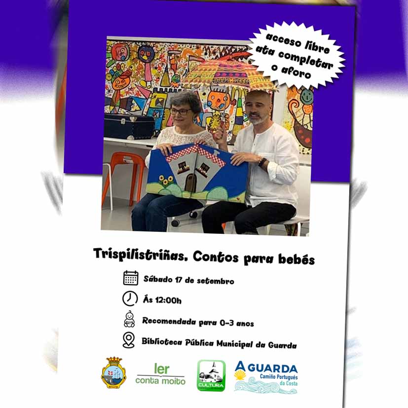 O vindeiro sábado día 17 de setembro ás 12:00h a Biblioteca Pública Municipal da Guarda acolle a actividade “Trispilistriñas. Contos para bebés”, actividade de acceso libre ata completar o aforo e enmarcada no programa Ler conta moito.