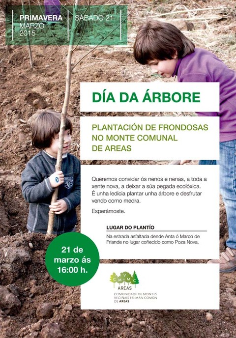O vindeiro sábado día 21 de marzo, día mundial da árbore a Comúnidade de Montes de Areas organiza ás 16 horas unha plantación de frondosas no Monte Comunal de Areas.