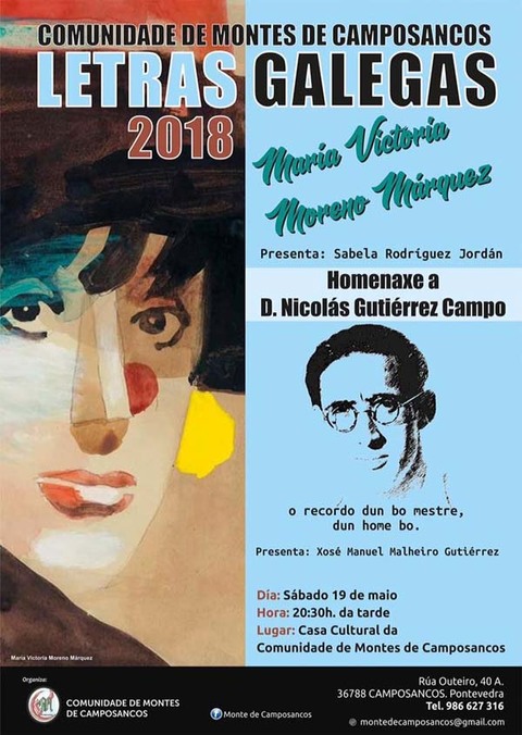 Este sábado, 19 de maio as 20,30, a casa cultural da Comunidade de Montes de Camposancos acollerá un acto con motivo da celebración das Letras Galegas.