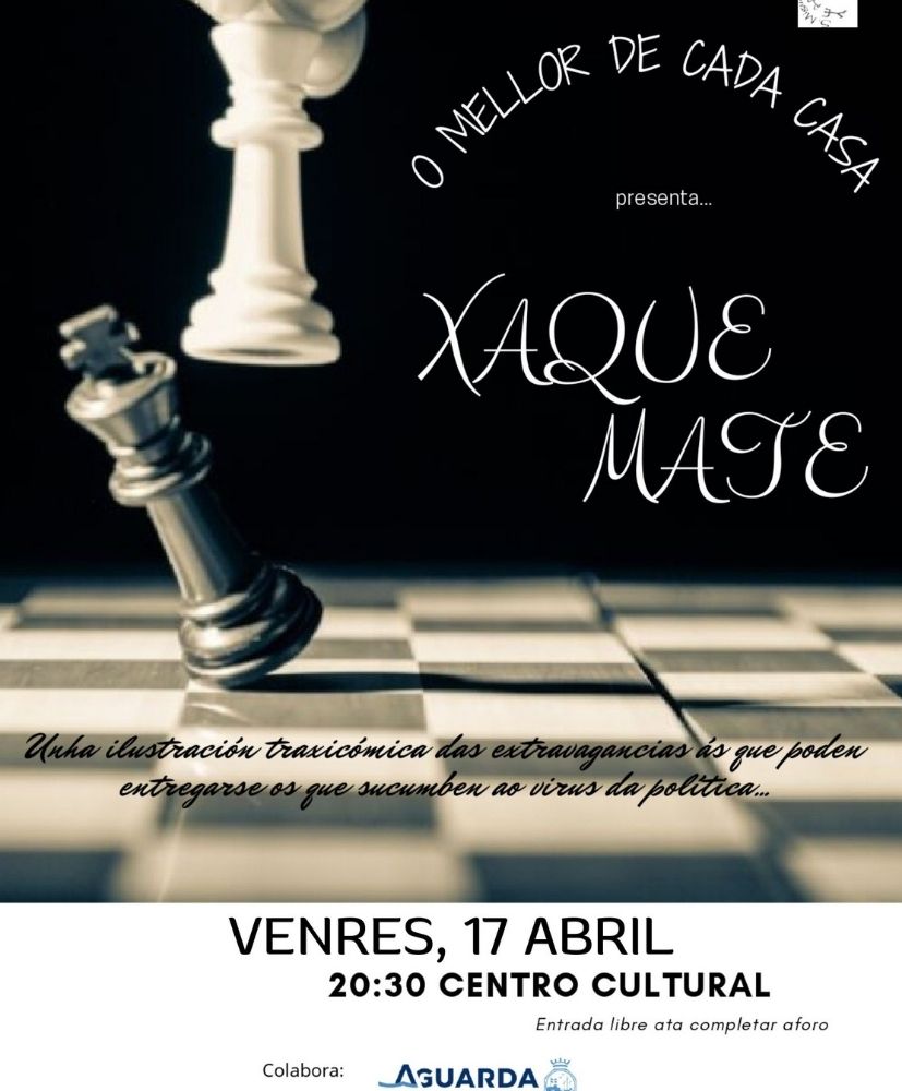 El teatro regresa con fuerza a A Guarda con una propuesta que mezcla humor, crítica y reflexión. El próximo viernes 17 de abril, el Centro Cultural acogerá la representación de la obra ‘Xaque mate’, una pieza que aborda, desde una perspectiva trágico-cómica, las dinámicas y excesos del mundo de la política.