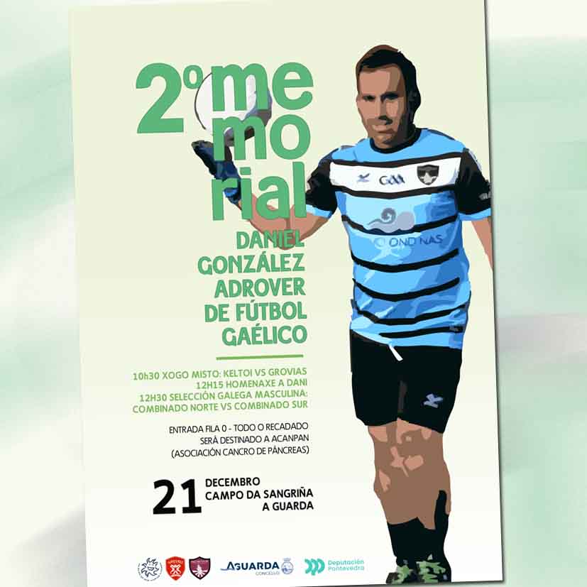 Este sábado, 21 de diciembre, el Estadio Municipal da Sangriña de La Guarda acogerá la segunda edición del Memorial Daniel González Adrover de fútbol gaélico, un evento deportivo y solidario en homenaje al vecino de la localidad, fallecido el año pasado a causa de un cáncer de páncreas. La jornada, organizada por los equipos Gróvias y Keltoi, comenzará a las 10:30 de la mañana con un partido mixto entre los integrantes de ambos equipos.