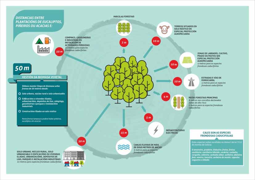 A biomasa en ditas franxas deberá estar xestionada antes da finalización do mes de maio de cada ano, é dicir, sen eucaliptos, acacias, piñeiros, silvas, toxos, fentos, etc. favorecendo a descontinuidade vertical e horizontal destas. Dita xestión será de obrigatorio cumprimento polos propietarios destas parcelas e, no suposto de incumprimento, a administración pública competente, de oficio ou a solicitude de persoa interesada, enviará á persoa responsable unha comunicación no que se concederá un prazo de quince días para a execución da mesma, con apercibimento de execución subsidiaria con repercusión dos custos da xestión, e no seu caso, comiso das especies prohibidas, sen prexuízo da instrución do procedemento sancionador.