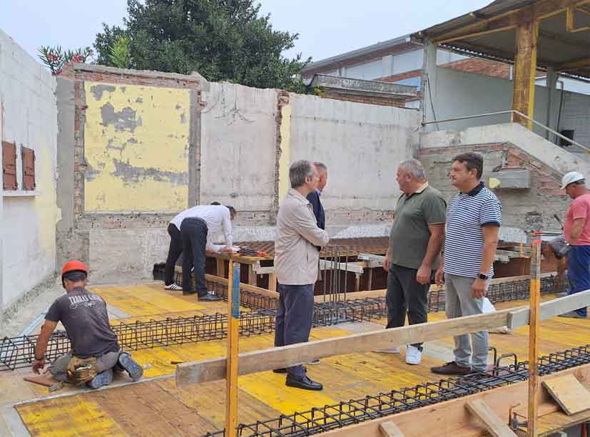 O campo municipal de fútbol da Sangriña atópase en proceso de mellora das súas instalacións coa construción dunha nova pasarela accesible, así como a renovación da cantina e do almacén da entrada.