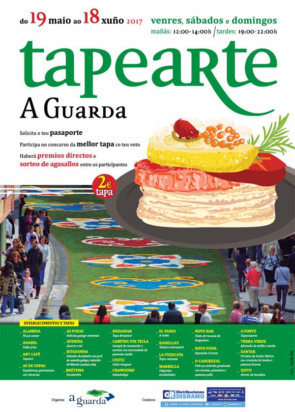 O Concello da Guarda organiza novamente a Ruta Gastronómica "TAPEARTE" e nesta edición adiantouse o comezo para rematar xusto coincidindo coa celebración das Alfombras florais do Santísimo o domingo 18 de xuño.