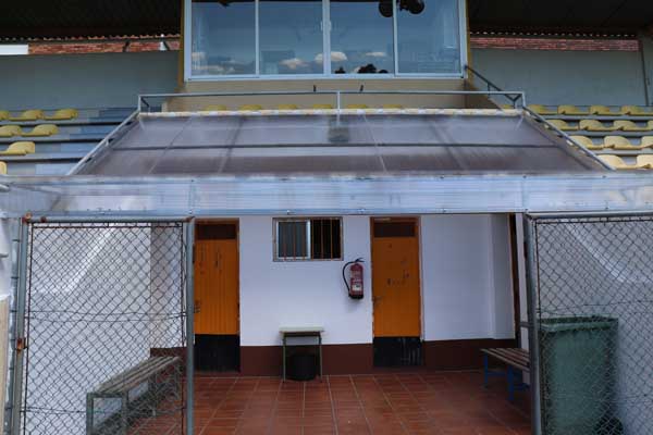 De igual xeito o proxecto contemplou a renovación da totalidade da pintura das instalacións coa retirada da pintura existente, así coma o cambio do teito do acceso aos vestiarios dende o campo.