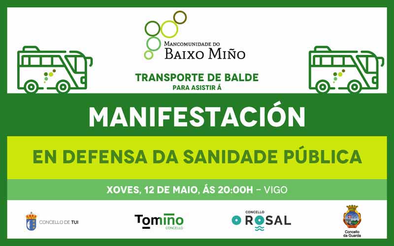 Por todas estas razóns, a Plataforma en Defensa da Sanidade Pública do Rosal chama á veciñanza a sumarse e participar na manifestación do vindeiro xoves. A Mancomunidade Intermunicipal do Baixo Miño ten a disposición dos veciños e veciñas autobuses de balde para poder desprazarse a Vigo e asistir á manifestación. As persoas interesadas deberán inscribirse e reservar praza chamando ao teléfono 986 622 500.