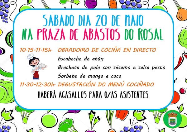 O sábado día 20 de maio na Praza de Abastos do Rosal "Obradoiro de cociña en directo".