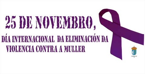 Dende onte mesmo nas fachadas da casa do concello está colgada unha pancartas cun gran lazo lila e o texto "25 de novembro, Día Internacional da Eliminación da Violencia contra a muller".