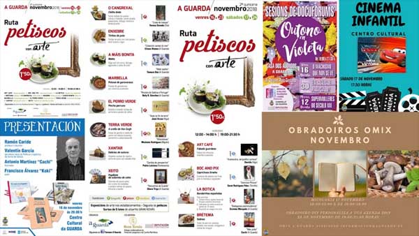 A Guarda acolle unha gran variedade de actividades entre o venres 16 e o domingo 18 de novembro, tendo coma eixo principal o inicio da ruta gastronómica «Petiscos con Arte», a presentación dos traballos literarios de Francisco Álvarez «Koki», unha proxección de cinema infantil, un docu-forum ou un mercadiño solidario.