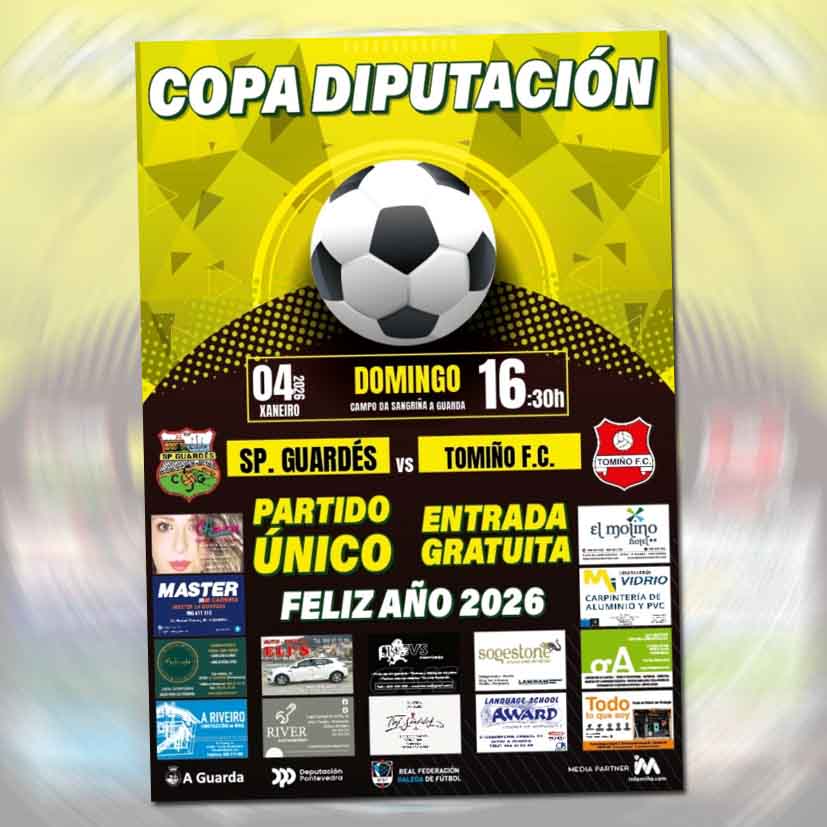 El Campo da Sangriña, en A Guarda, acogerá este domingo 4 de enero un atractivo enfrentamiento de la segunda ronda de la Copa Diputación de Pontevedra, que medirá al SP Guardés y al Tomiño FC. El encuentro comenzará a las 16:30 horas y contará con entrada totalmente gratuita, un aliciente más para que la afición se acerque a disfrutar del fútbol local.