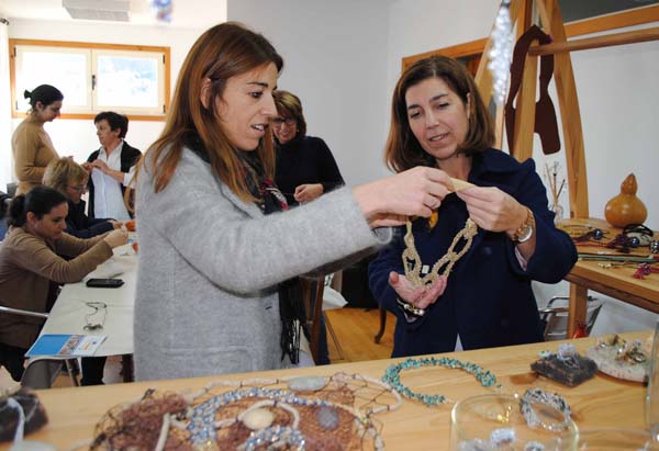 A directora xeral de Comercio, Sol Vázquez Abeal, e a directora xeral de Desenvolvemento Pesqueiro, Susana Rodríguez Carballo, visitaron hoxe na Guarda o curso de formación para redeiras que está a impartir a artesá especializada en bixutería Alicia González. A iniciativa forma parte das novas actividades formativas impulsadas en colaboración pola Consellería de Economía, Emprego e Industria e a Consellería do Mar coas que se sigue afondando na promoción da diversificación profesional das redeiras artesás de Galicia.