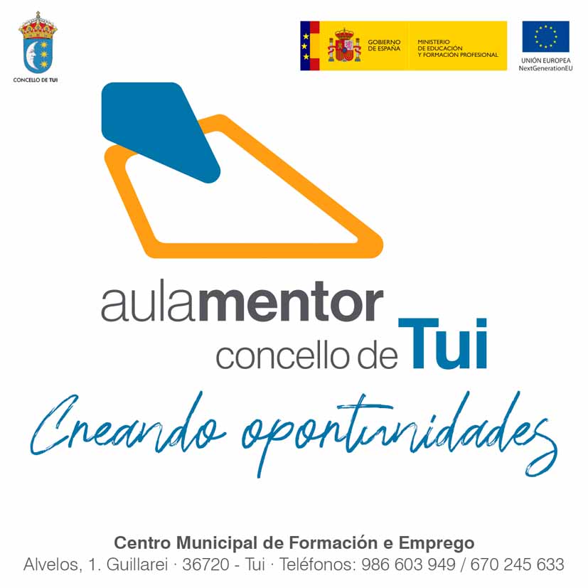Os interesados poden ampliar a información no Centro Municipal de Formación e Emprego onde está situada a aula nos teléfonos 986 60 39 49 e 670 24 56 33 ou no correo tui@aulamentor.es.