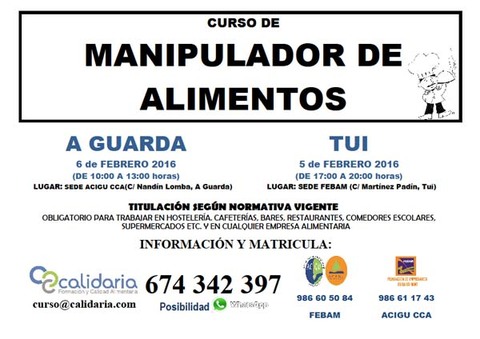 ACIGU E FEBAM ORGANIZAN CURSOS DE MANIPULADOR DE ALIMENTOS EN TUI E A GUARDA
