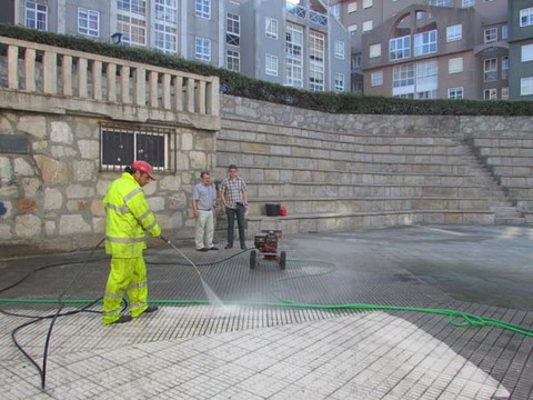 Ademais de limpar as praias ou colocar distintos contedores de recollida selectiva, o Concello traballou no acondicionamento do Auditorio de San Bieito. Cunha máquina de auga a presión, os traballadores municipais, sacaron toda a sucidade que impregnaba as gradas e a zona que fai de escenario.