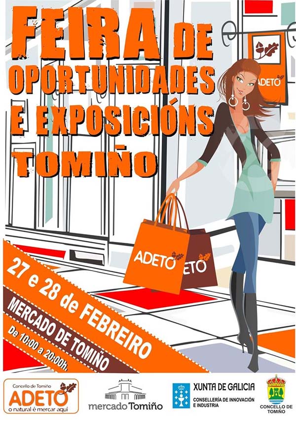 ADETO (Asociación de Autónomos de Comercio, Hostalería e Industria de Tomiño) organiza unha Feira de Oportunidades, Artesanía e Exposición de Arte, que terá lugar no Mercado de Tomiño, os días 27 e 28 de febreiro, con horario de 10:00 a 20:00 h.