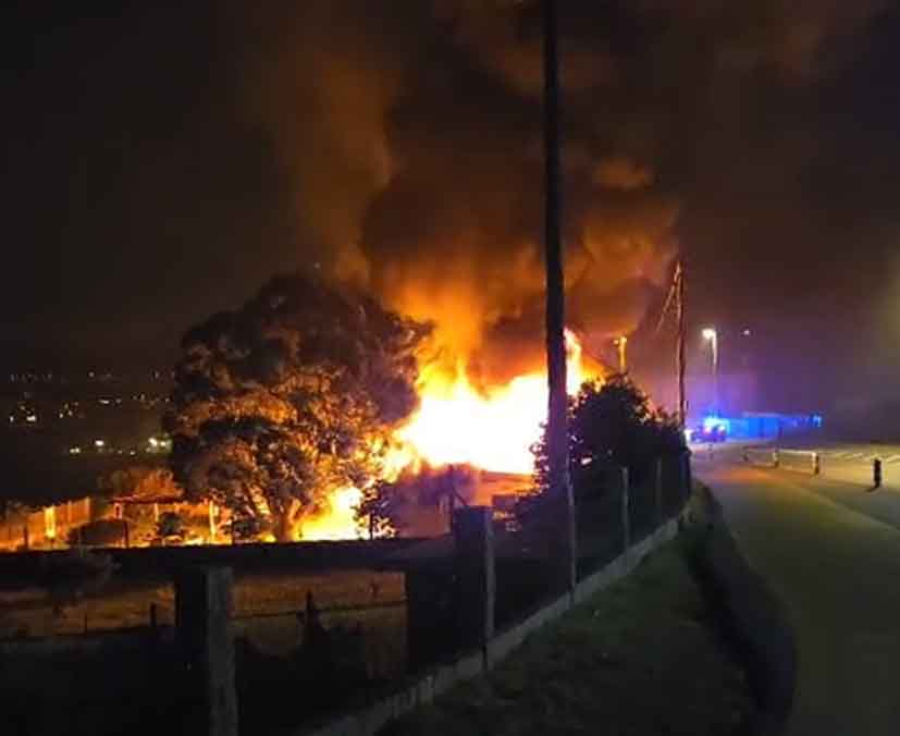 Un incendio de gran magnitud está activo en una vivienda de madera prefabricada situada en el límite entre los municipios de Oia y Baiona, a pié de la carretera PO-552, en la zona costera de Cabo Silleiro. Hasta el momento, se desconocen las causas del fuego y si hay personas afectadas por el siniestro.