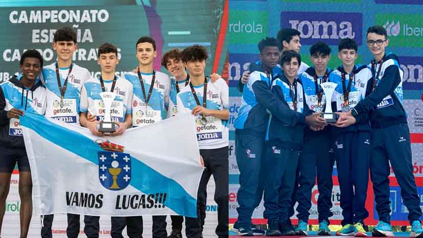 3 medallas nacionales para nuestros atletas del club atletismo Trega (tomiño) ALEJANDRO SANTOS Y ÁLEX SIERPES CON sus intervenciones ayudan a hacer una gesta histórica a la selección gallega en las categorías sub16 y sub18, contribuyendo a que las cuatro selecciones tanto masculina como femenina subieran a lo más alto del pódium por equipos en categorías inferiores en el Campeonato de España de Cross por autonomías en Getafe.