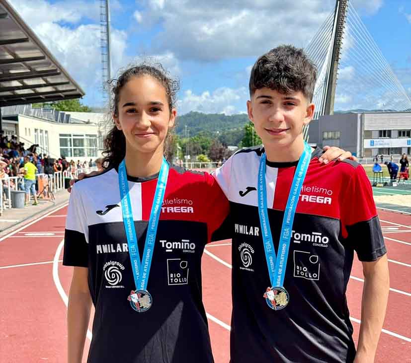 Alejandro Santos y Paula Rocha, del club Atletismo Trega de Tomiño, logran oro y plata en el Campeonato Gallego Sub16, destacando en las pruebas de 3000 metros.
