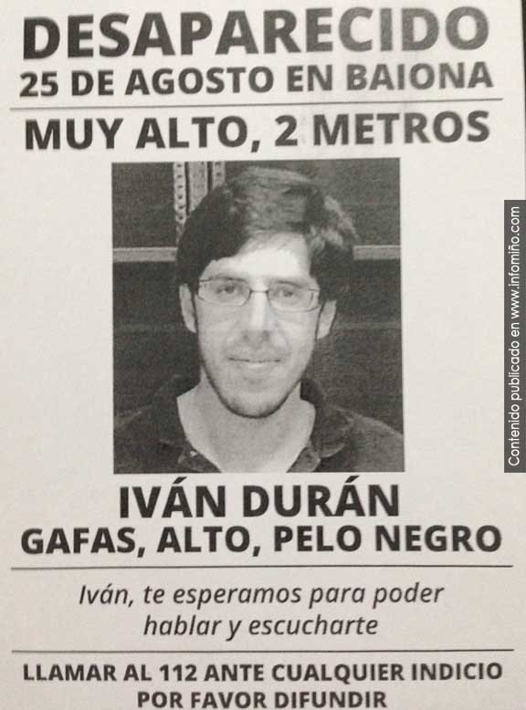Iván Durán desapareceu o 25 de agosto en Baiona, e dende ese día non se sabe nada do seu paradero