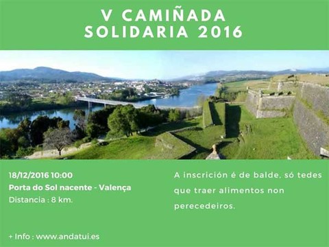 Por iso, para ser solidarios, o día 18/12/2016 con saída ás 10:00 da Porta do Sol Nacente en Valença, dirección Tui e voltando ó mesmo sitio. 8 km. de paseo.