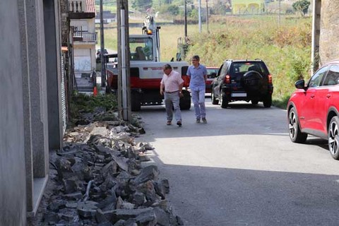 O Concelleiro de Vías e Obras no Rural, Miguel Español e o Alcalde da Guarda, Antonio Lomba, visitaron esta mañá o arranque das obras na Rúa Vigo.