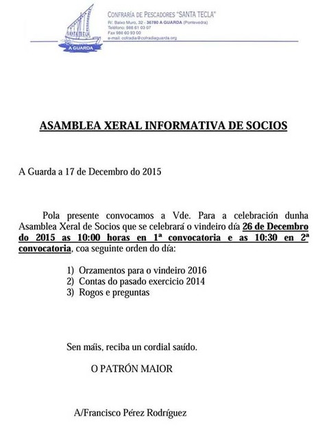 ASAMBLEA XERAL INFORMATIVA DE SOCIOS NA COFRADÍA DE PESCADORES A GUARDA