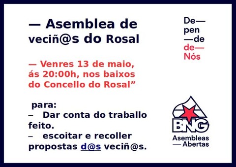 ASEMBLEA ABERTA NO ROSAL ESTE VENRES 13 DE MAIO