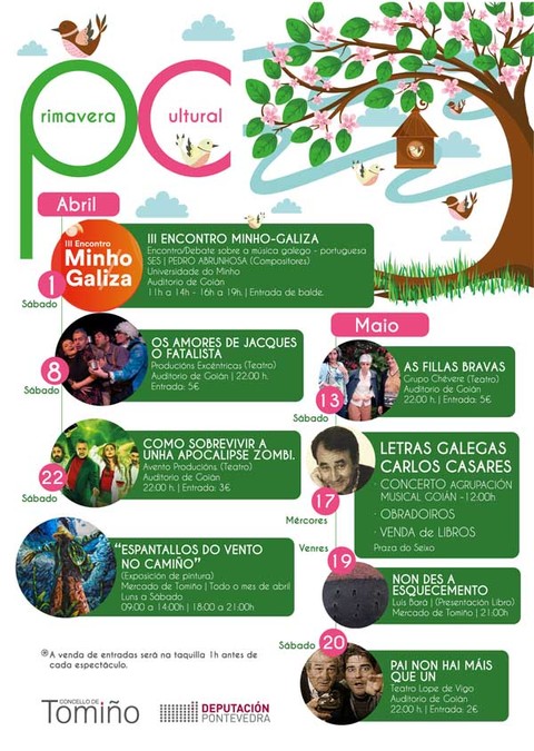 A actuación está dentro da programación cultural de primavera do Concello de Tomiño. A función terá lugar no auditorio de Goián, o vindeiro sábado 22 de abril, a partir das 22.00 horas, podéndose adquirir as entradas dende unha hora antes en taquilla.