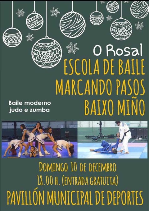 O vindeiro domingo día 10 de decembro de 2017 o Pavillón Municipal do Rosal acollerá unha demostración de baile moderno, judo e zumba a cargo da Escuela de Baile Marcando Pasos Baixo Miño.