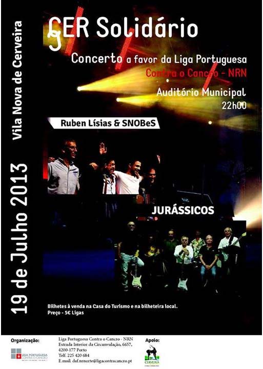 BANDAS -RUBEN LÍSIAS & OS SNOBES- E ?JURÁSSICOS- EM CONCERTO SOLIDÁRIO, DIA 19 DE JULHO, A FAVOR DA LIGA PORTUGUESA CONTRA O CANCRO