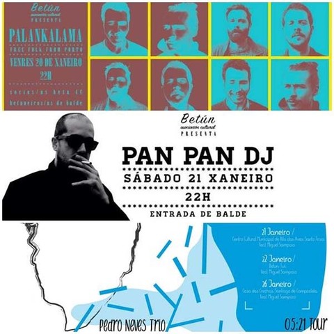 Pan-Pan Dj, busca sons e melodías entre o pop, o electro-pop, e outras moitas conxuncións ata chegar até a cumbia e os sons tropicais. Unha búsqueda entre sellos independentes e recopilacións bastardas do noso panorama musical.