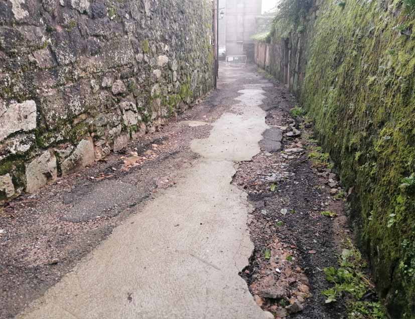 El callejón presenta socavones profundos que entrañan un peligro para los transeúntes y para la circulación de vehículos, y critica el hecho de que por ese motivo se halle cortado al tráfico, puesto que los vecinos no pueden acceder al aparcamiento del seminario cuando Canónigo Valiño y Antero Rubín están en plenas obras de humanización, lo cual les ncausa tremendos trastornos en su vida cotidiana.