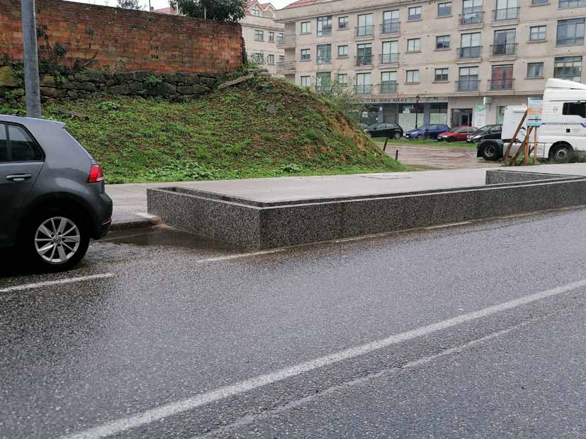 Esta construcción, levantada en su base con bloques y cemento, y por lo tanto inamovible, se encuentra en la vía principal de Tui, lo que para Converxencia 21: “Limitará sobremanera la disponibilidad de este vial a la hora de tener que ser usado para eventos especiales como vueltas ciclistas o desfiles de carnaval o en caso de emergencia y evacuación”.