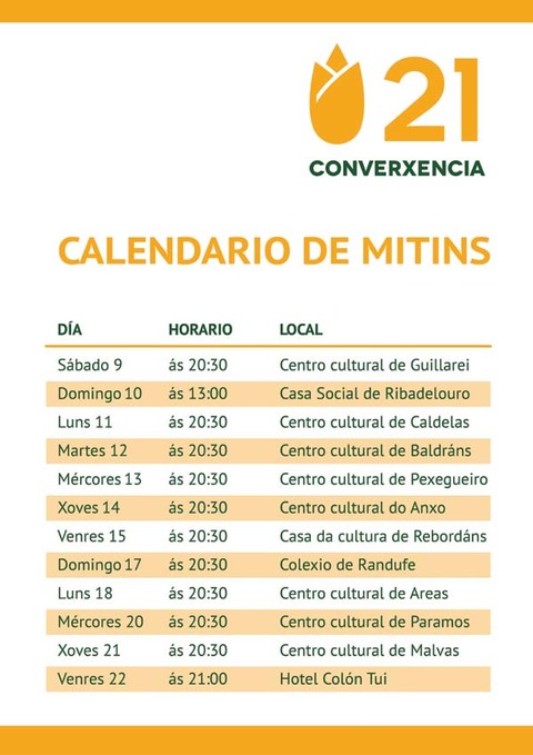 CALENDARIO DE MITINS DE CONVERXENCIA XXI