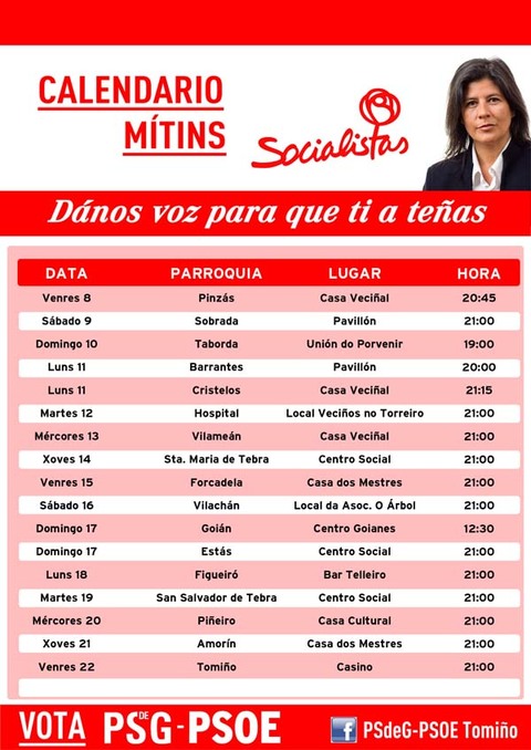 CALENDARIO DE MÍTINS DO PSdG-PSOE DE TOMIÑO