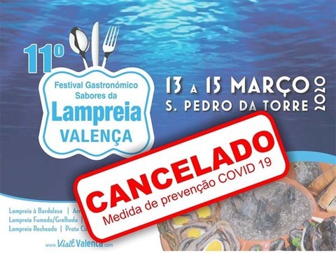 O Município de Valença comunica o cancelamento da 11ª edição do Festival Gastronómico Sabores da Lampreia, programado para este fim de semana, de 13 a 15 de março.