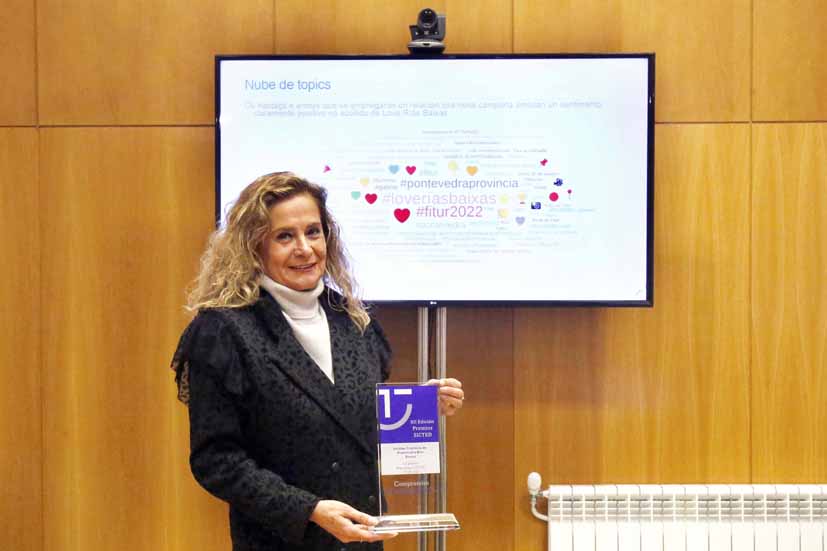 Carmela Silva  fixo balance sobre FITUR e lembrou que a provincia recibiu o premio SICTED ao mellor destino nacional, un galardón que “tivo repercusión a nivel estatal porque se fixo eco o propio Ministerio de Turismo”, apuntou. Ademais a Deputación recolleu a “Q” de calidade para o castelo de Soutomaior, e formalizou a súa adhesión á Spain Film Commission. “Tamén asinamos o acordo de promoción con Renfe para ter presenza en estacións e nos trens que saian de calquera lugar de España para achegarse a Galicia, o que nos permitirá centrar varias ofertas e produtos”, lembrou, para resaltar tamén as visitas a stands;  a participación no primeiro taller HUB Español Gaia X, centrado na creación do espazo de datos de turismo; e o traballo de “networking” de Turismo Rías Baixas a través de contactos profesionais, encontros da Ruta dos Fenicios e da Red DTI, e prospeccións para accións de ecoturismo e turismo deportivo.
